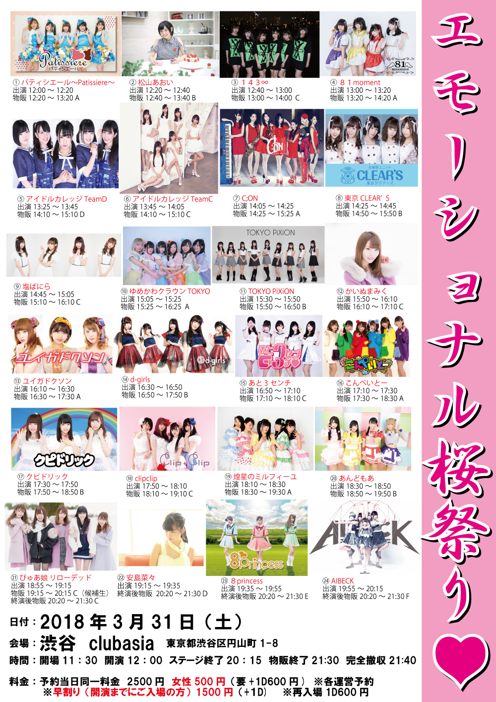 3/31(土)主催 渋谷clubasia「エモーショナル桜祭り」