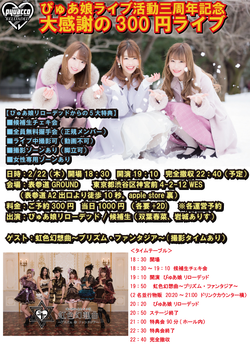 2/22(木)夜 ぴゅあ娘ライブ活動三周年記念